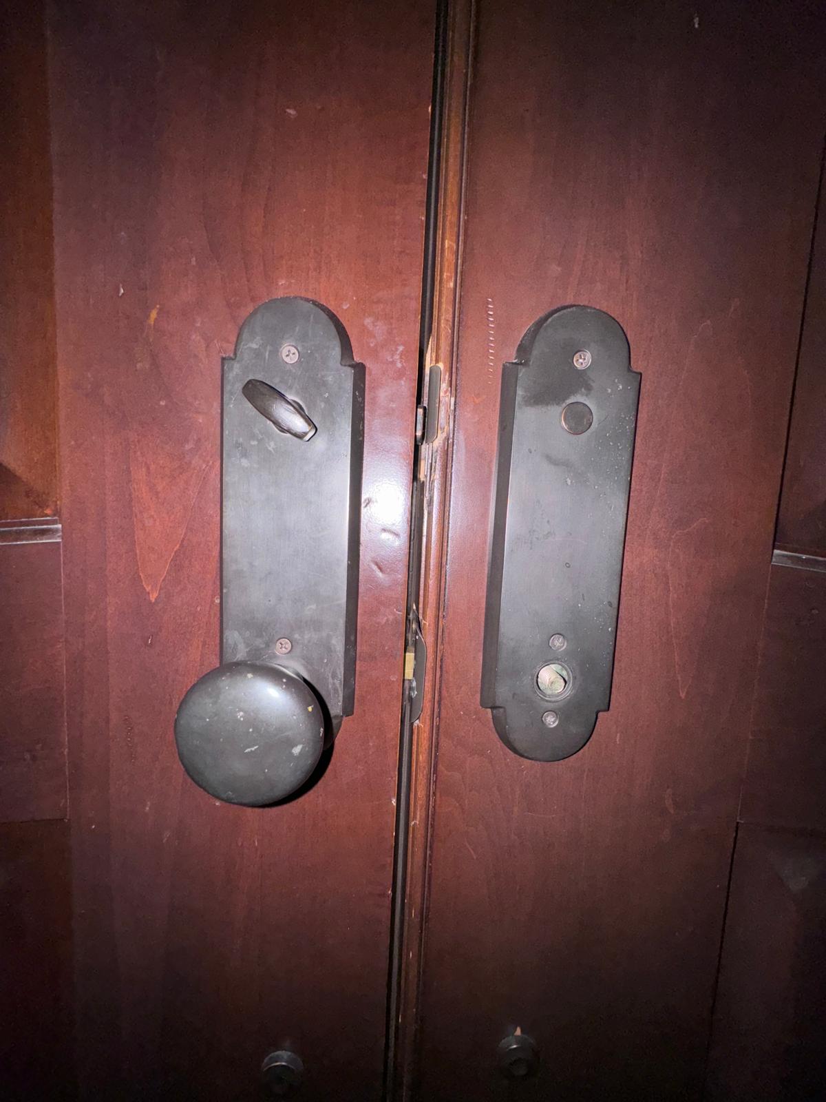 Second, I found out that one side of this lock is broken and without a handle, but the good news is that this side of the door is always closed.