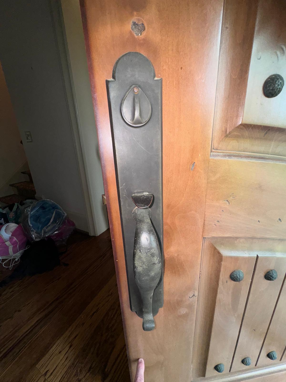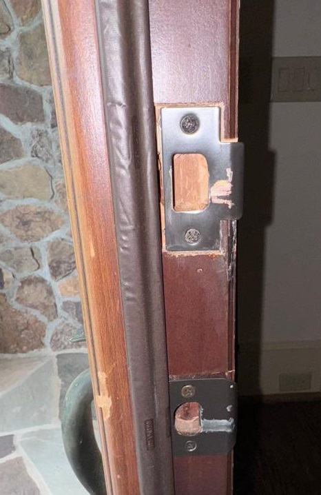When I arrived at my client’s home, I noticed that one side of the door was lying down and not parallel as it should have been.