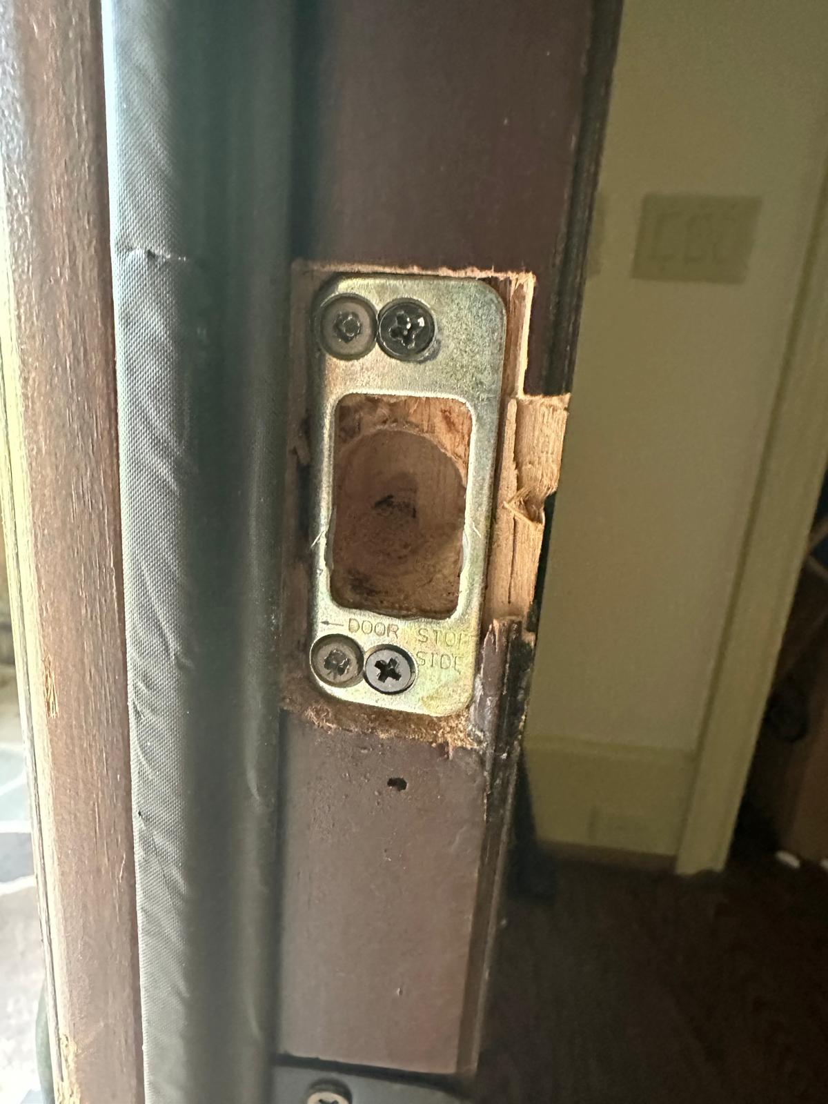 Third, the deadbolt lock can’t be locked all the way in because the hole is not deep enough.